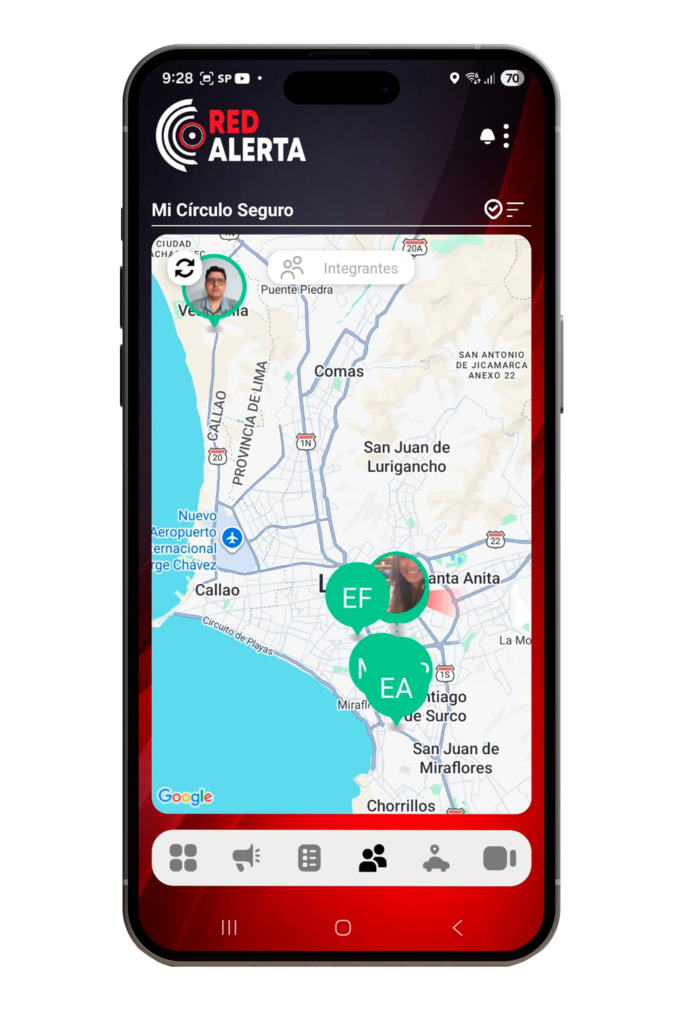 Conectados aunque estén lejos. No importa dónde estés ni dónde estén ellos. Red Alerta mantiene a tu familia conectada en una red de protección activa — con alertas, ubicación en tiempo real y una central que responde cuando más se necesita.